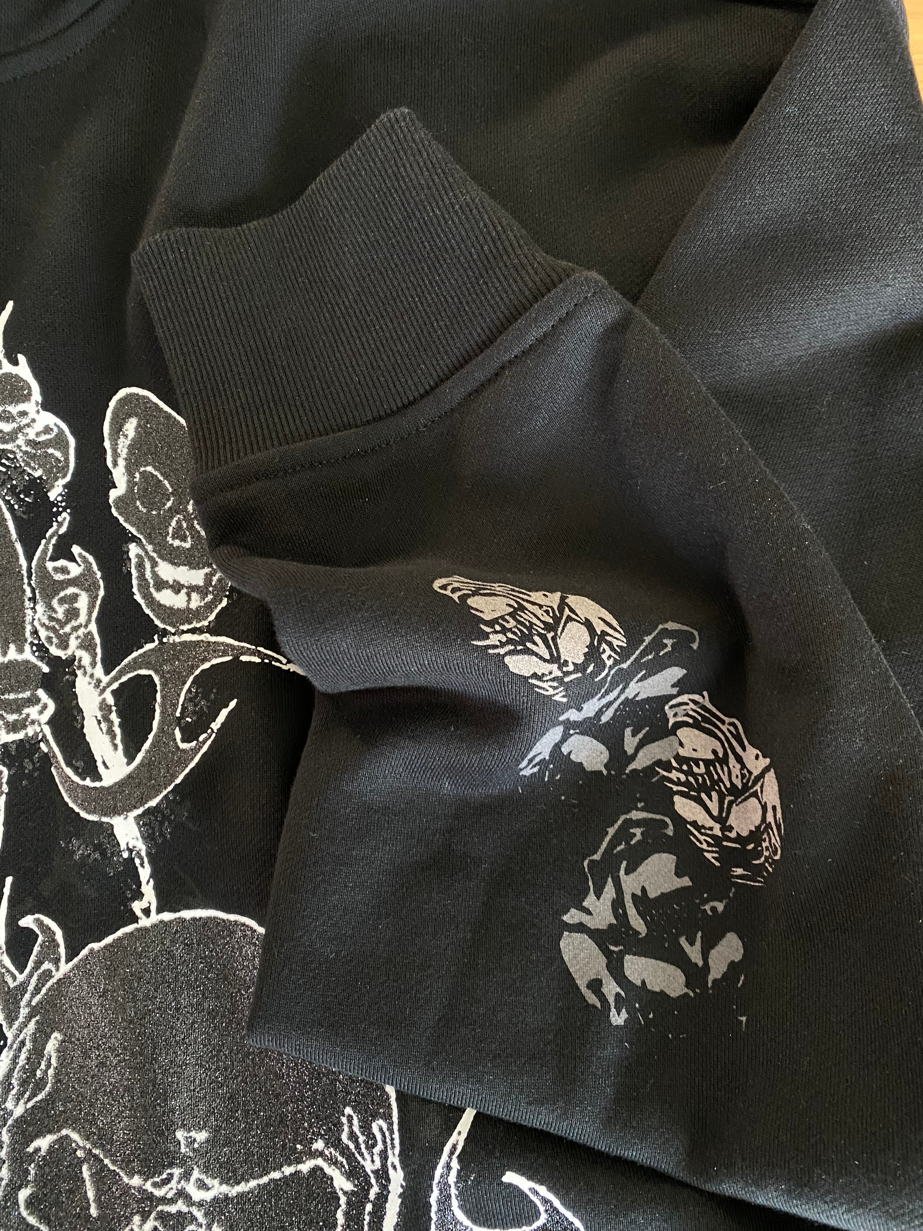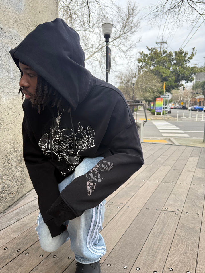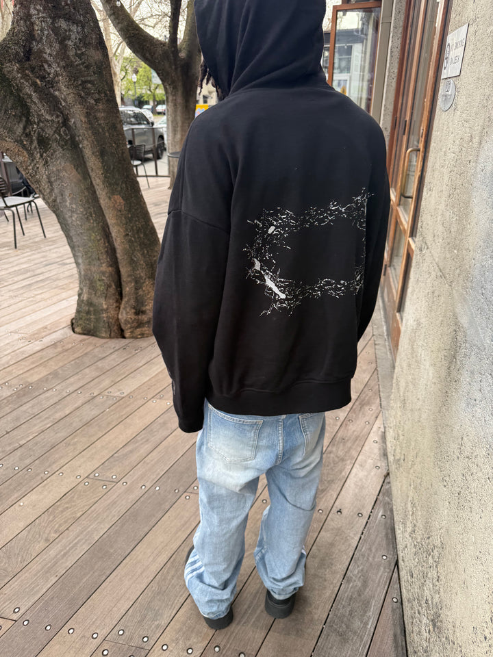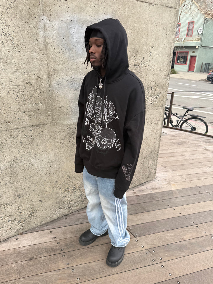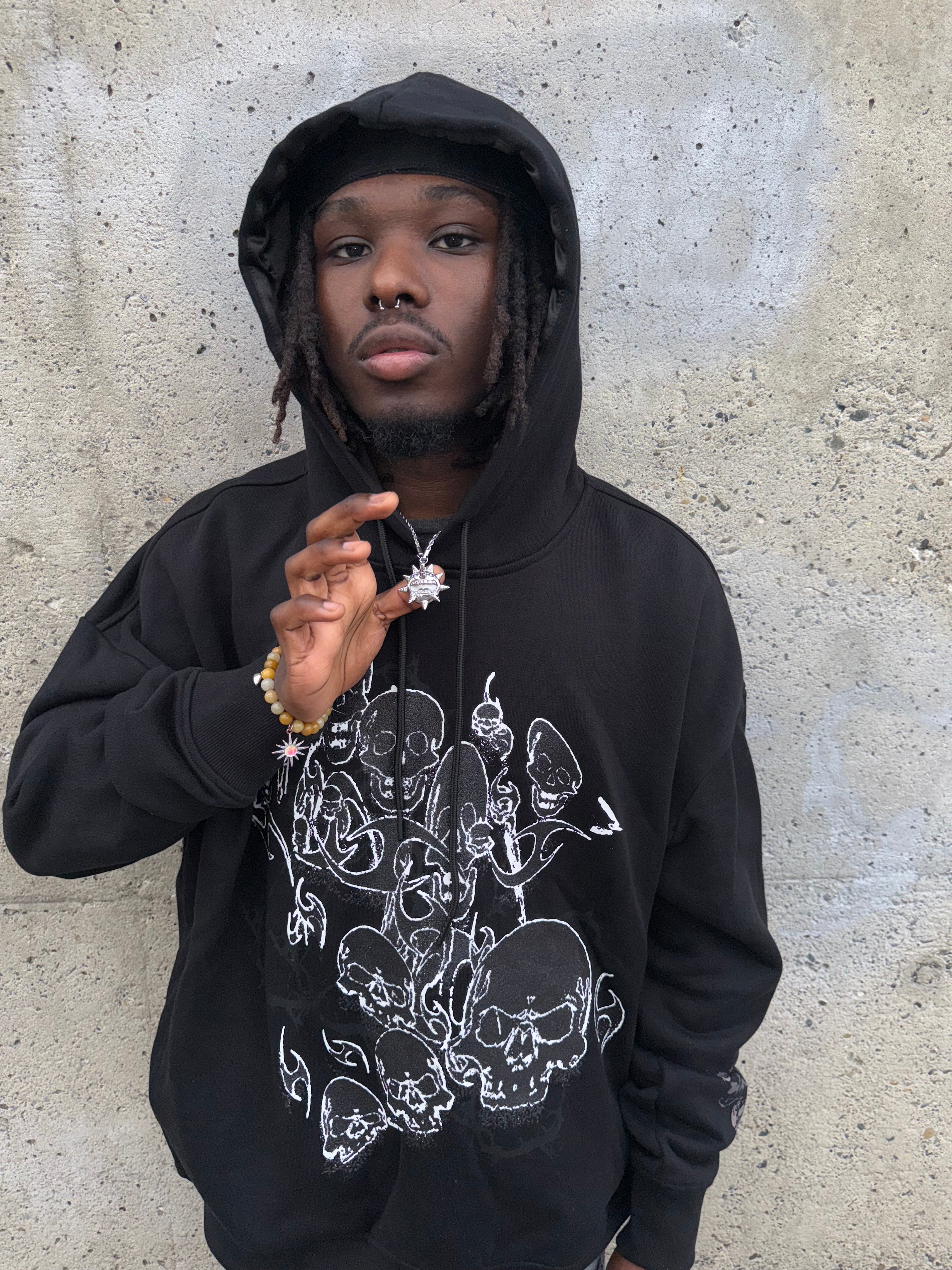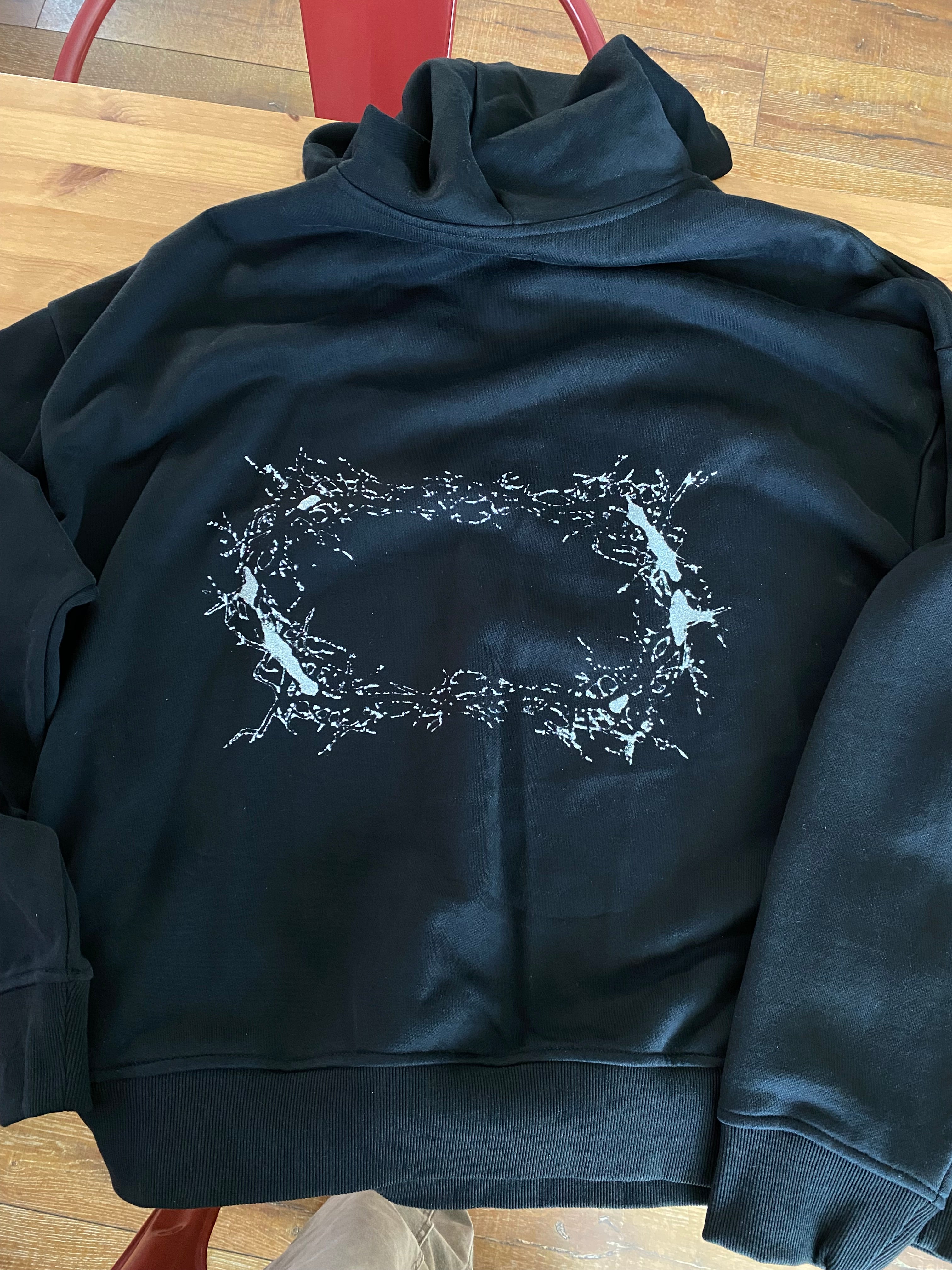 - Again: Order a size down (example: if you wear a L order an M). Hoodies naturally fit oversize/baggy. Slight crop. Artist wearing hoodie is 5’11 174lbs wearing sz S